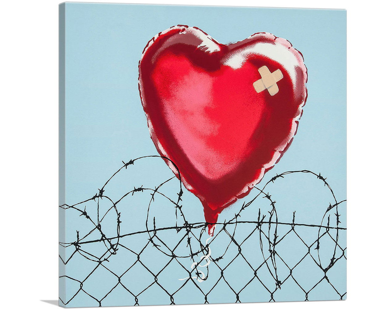 Artcanvas Love Hurts Barbed Wire Heart Ballon By Banksy Etsy Singapore